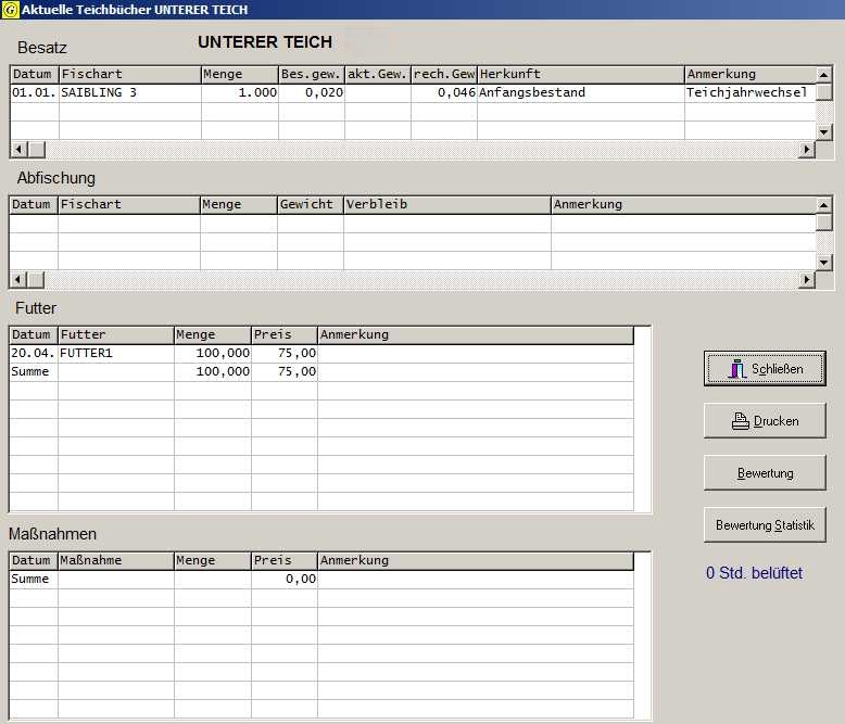 DASSALMO ist Teichsoftware für Forellenzuchten und -teichwirtschaften, für Karpfenzuchten gibt es ein Teichprogramm namens DASTEICH. Einer Einladung des Verbandes Hessischer Fischer folgend wurde das Programm im Rahmen des Fachseminars für Erwerbsfischer 2007 am 25.09.2007 in Alsfeld vorgestellt. DASSALMO ist für Teichwirtschaften und Fischzuchten gedacht, die ihr Teichbuch bzw. ihre Teichprotokolle übersichtlich bearbeiten und verwalten wollen. Es wurde mittels der Unterstützung von Fischwirten, vor allem sei hier Toni Kurz vom Forellenhof Nadler in Eching bei München genannt, praxisnah entwickelt. Die Hantierung ist äußerst einfach, da der Benutzer vom Programm geführt wird und an jeder Stelle des Programmes bei der erwarteten Eingabe von Informationen unterstützt wird. Die Informationen, die erfragt werden, erwarten nur anwenderspezifische Kenntnisse. Um mehr über DASSALMO zu erfahren, können Sie die Produkt-Information herunterladen und/ oder eine kostenlose Demoversion anfordern, die Ihnen als CD per Post zugeht - daher bitte Ihre Adresse angeben - oder Sie wenden sich direkt an mich. Sie können die Demoversion auch direkt herunterladen. Ansicht des Teichbuches |